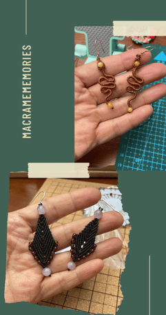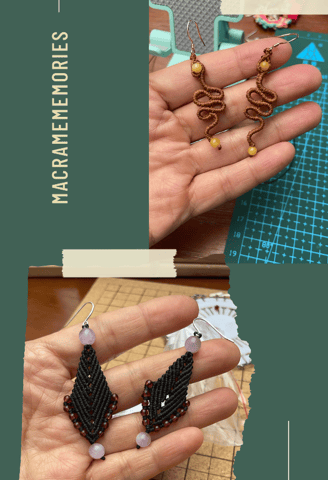 *蛇形耳环:蜡线+蜜蜡小珠 *菱形耳环:蜡线+水晶珠+紫色石榴石